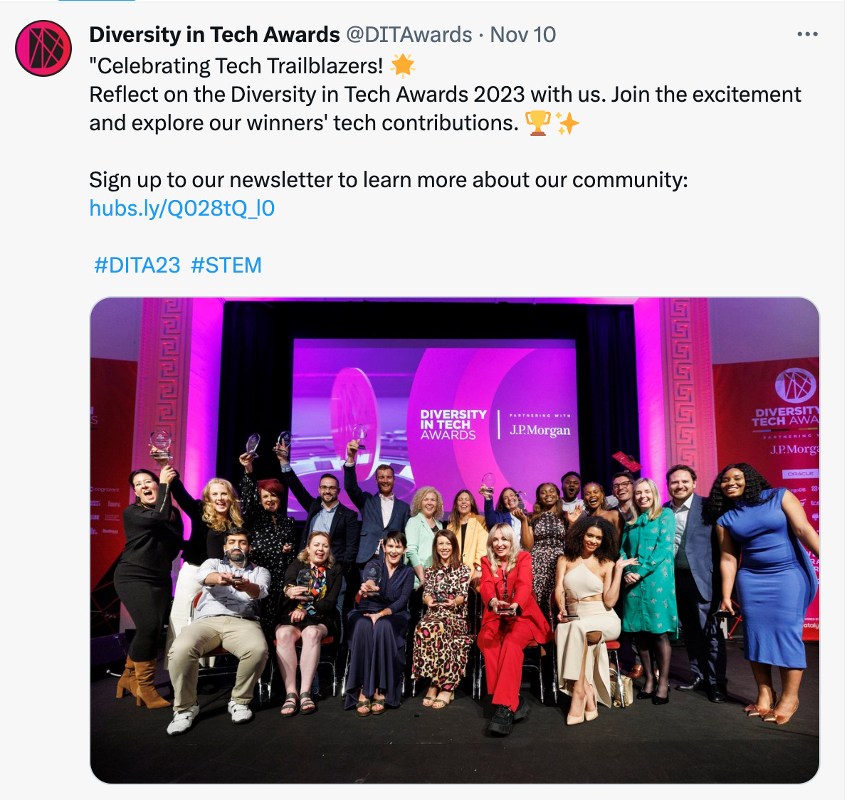 And I want to say congrats to all the Diversity in Tech Awards nominees and winners which took place at the end of Sept. And I was humbled to be one of the judges, so many talented and amazing people, you are all winners. 🤩
