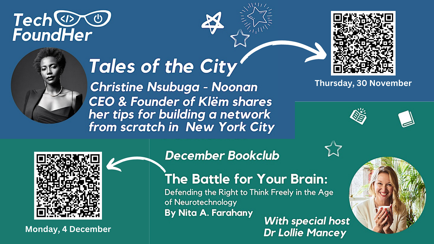 Our friends from the TechFoundHer community have also been quite busy, and they have another upcoming bookclub on Dec 4 as well as a special online Meet the Founder event with Christine Nsubuga Noonan on Nov 30th.